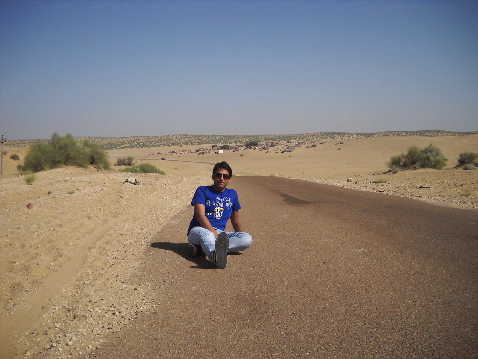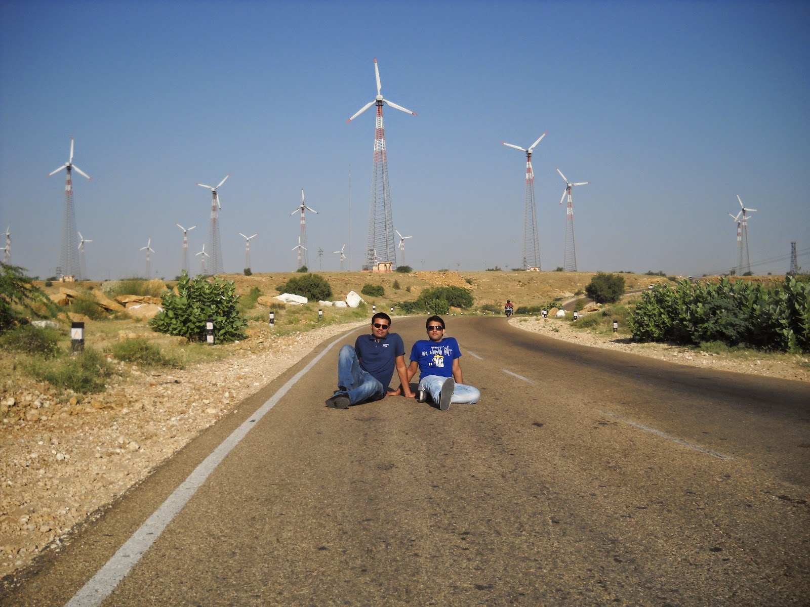 Here is the link to the road-route taken by us during the whole journey. It also contains placemarks for all the places where we took night shelter, meals, places we visited etc. Delhi to Jaisalmer Road Trip 2012 Route Map