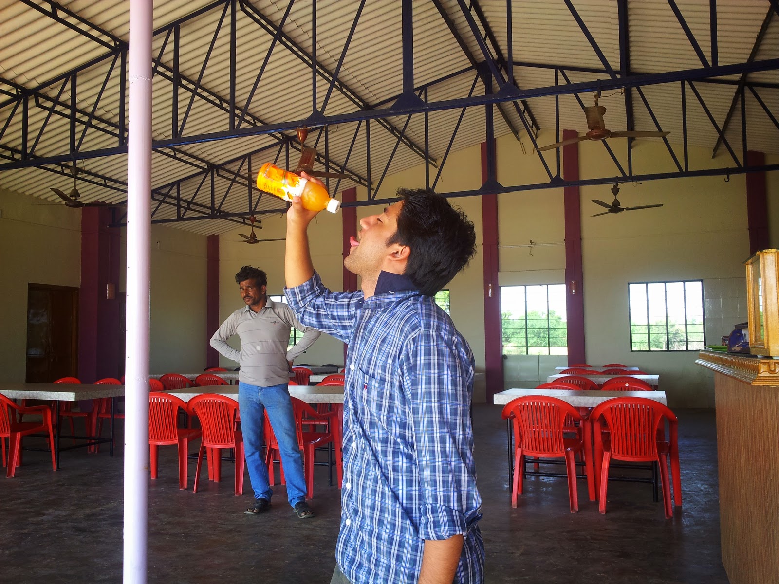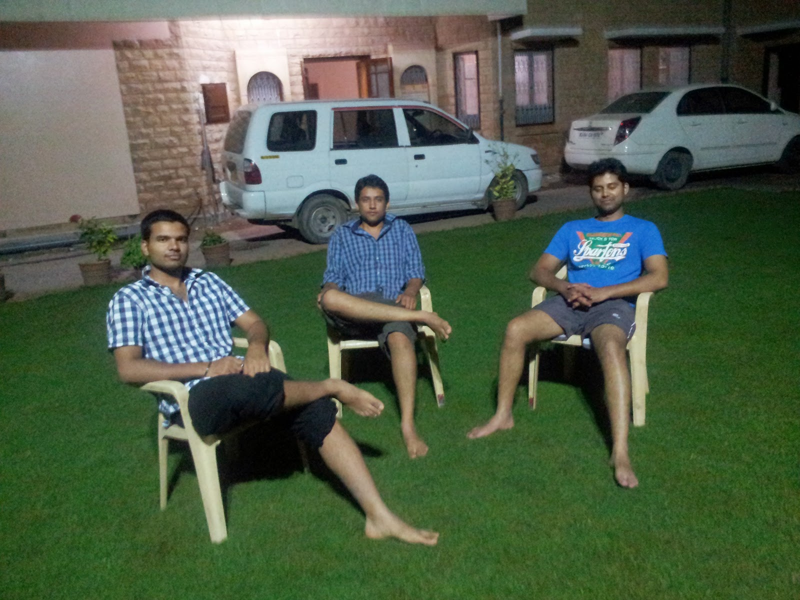 Nearby our holding place, there was a place called Hotel Shivam & Restaurant. We ordered for paneer masala, dal makhani, raita, veg biryani, and some fancy papads. The food was awesome and at very nominal price. It cost us Rs.363 for 3 people. For the first time in our 3 day journey we had a sumptuous meal. After having dinner we walked back to the banquet hall. There was a lush green lawn inside the banquet hall; tents were put up for marriages and functions. We walked on the lawn for some time and then went to our room for night's sleep.