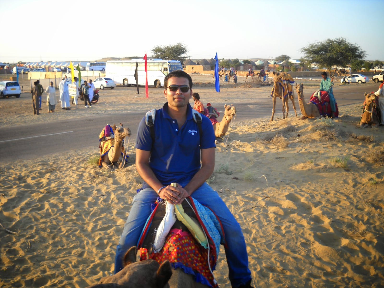 After parking our car we straight went for a camel ride. Getting onto a camel is a very difficult task because of their jerky movement when they get-up on their feet. One of our friends fell down in this process, but he was ok as he fell on a cushion like sand. We traveled some 500m on camel, then the camel-owner stopped his camels and said that the package includes this much ride only, but he can take us ahead into Thar desert for a meager sum of Rs.500 per camel. This is their trick to make money, they are paid on a monthly basis by the camp owners, but still they use this trick. We agreed for Rs600 for 2 camels, then he took us further into the sand. You can play in the sand, click photos, watch sunset from the dunes. Then after playing in the sand and getting our clothes full of sand, we went back to our camp on camels. We were running late by 1hour, so we missed our welcome snacks and drink. Normally people reach Sam sand dunes by 4:30pm for camel rides till sunset point. After getting into our camp we went for a bath, there is a 24hour water supply, a bathroom and a american style toilet for each camp. After that we all went to see the traditional folk dance, it was some 1 hour program, little bit of enjoyment. Then there was a rajasthani buffet, it included dal-bhati-choorma, their local dish, raita, mix-veg, salad, poori etc. The buffet neither looked good nor tasted good. It was a bad experience for us. We ate very little. Mineral water bottles of some unknown companies were available, soft-drinks and hard-drinks were also available but these were not included in the camp-cost. After buffet you can go into your respective camps and sleep. In the morning you can hire camels to go into the sands (charges extra), and see sun-rise. In breakfast they provided bread-butter, and chhole poori, with tea and coffee. Again the quality was very bad. Staying at that camp was a forgettable experience for us.