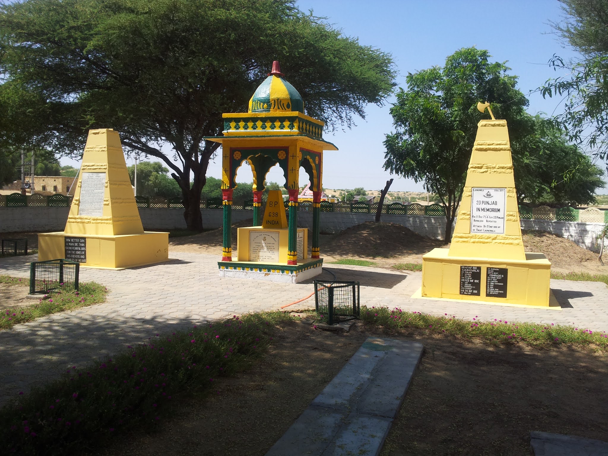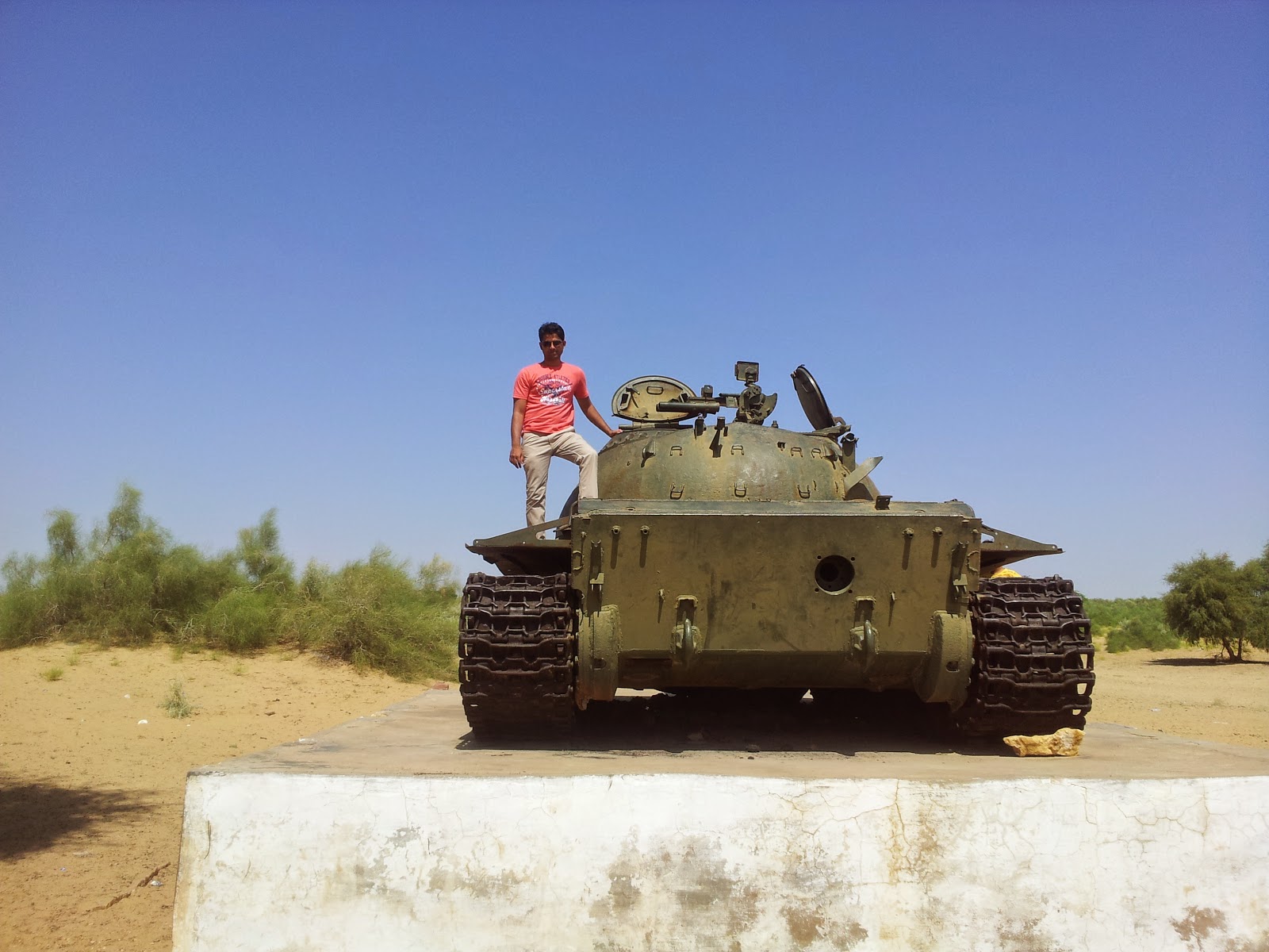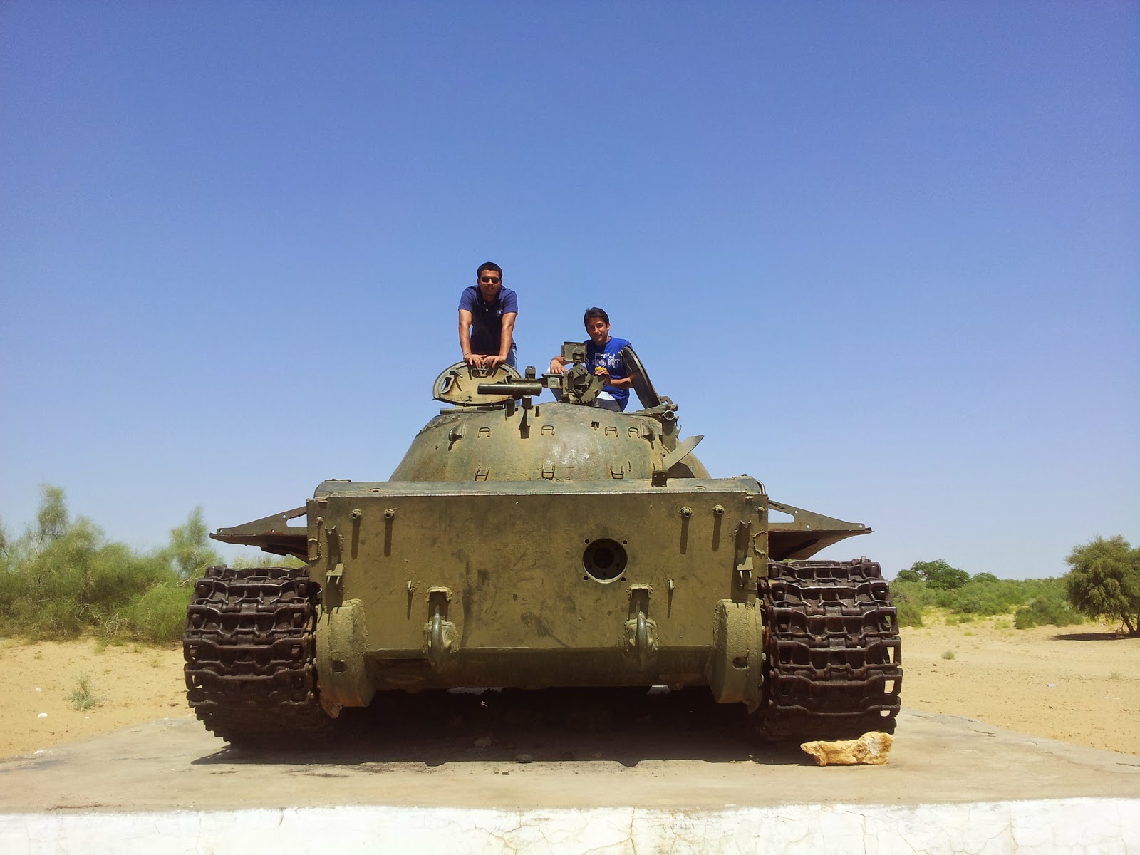 12:50pm (970km), reached Longewala. It's the same place where Border movie was shot, this was the place where Suniel Shetty was posted. The small temple which was protected by Suneil Shetty is still present here. A Pakistani T-59 tank and a truck which Indian army destroyed in the Indo-Pak war of 1971 are still here. You also have to add an entry for your vehicle in the register which is with the army soldiers. An army soldier told us that in the war of 1971, Pakistan army was able to reach till here, and they even destroyed the Indian border post. But Indian army soon gained control and re-positioned the Indian post here. In the war of 1971, the number of Indian soldiers present at Longewala were very less, but even then they uprooted the entire Pakistan army attack, Pakistani soldiers were present here in huge numbers. a BP638 is present at Longewala.