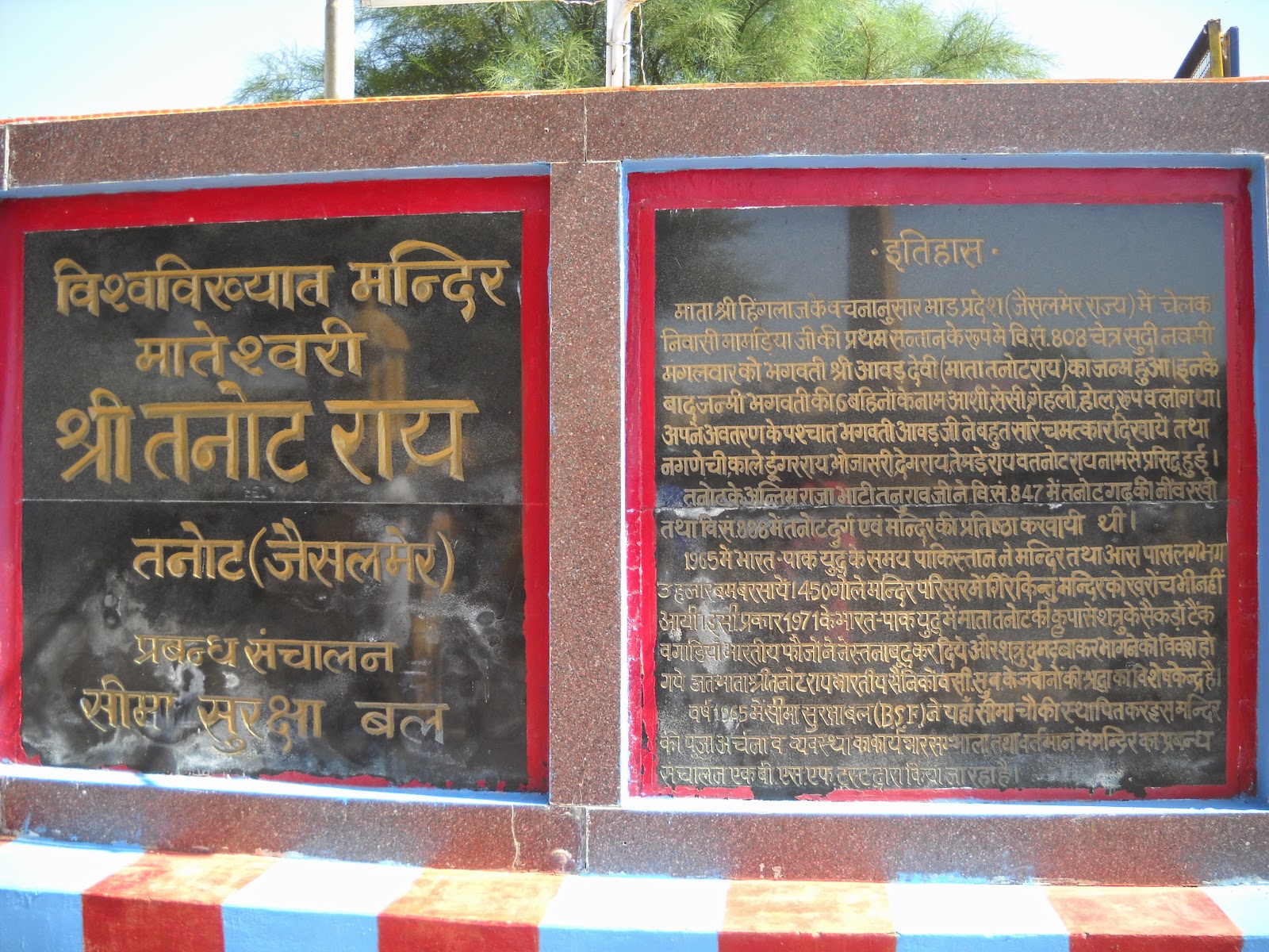 10:50am (932km), reached Tanot. Mata Tanot Rai is situated some 20km from the Indo-Pak border. In the Indo-Pak 1965 war, Pakistan fired some 3000 bombs on this temple and the area nearby. About 450 bombs fell on the temple and inside the temple premises, but none of them detonated, and the temple did not receive a single scratch. Collection of such bombs is on display inside the temple. BSF has maintained this temple since 1965, it used to be a small temple then, but now it has expanded a little. Now there is a small eatery shop, restrooms, mess and a BSF hostel.