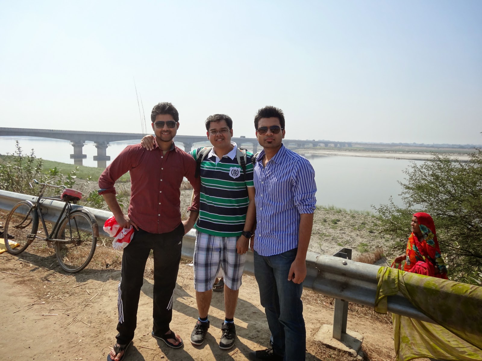 We decided to have a practice session at Ganga flowing through the by-pass before we took that final dip. Shikhar and I got the taste of what was in store for us at Triveni Sangam. We went to the river bank, and after practicing came back to head to our final destination.